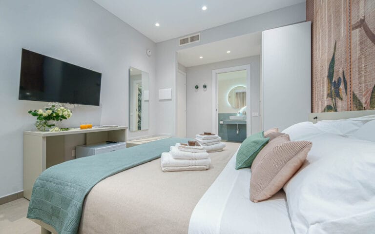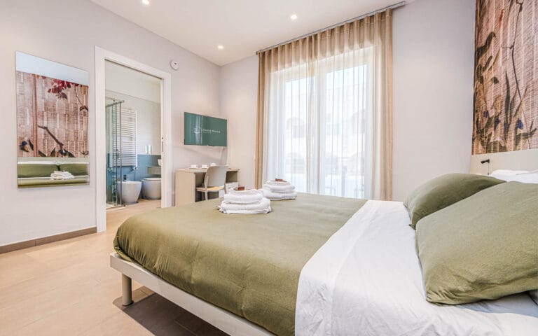 Ampia e piena di luce, questa camera ti accoglie con toni caldi e morbidi, un letto comodo con tessuti coordinati e un balconcino dove gustare un caffè o leggere un libro.