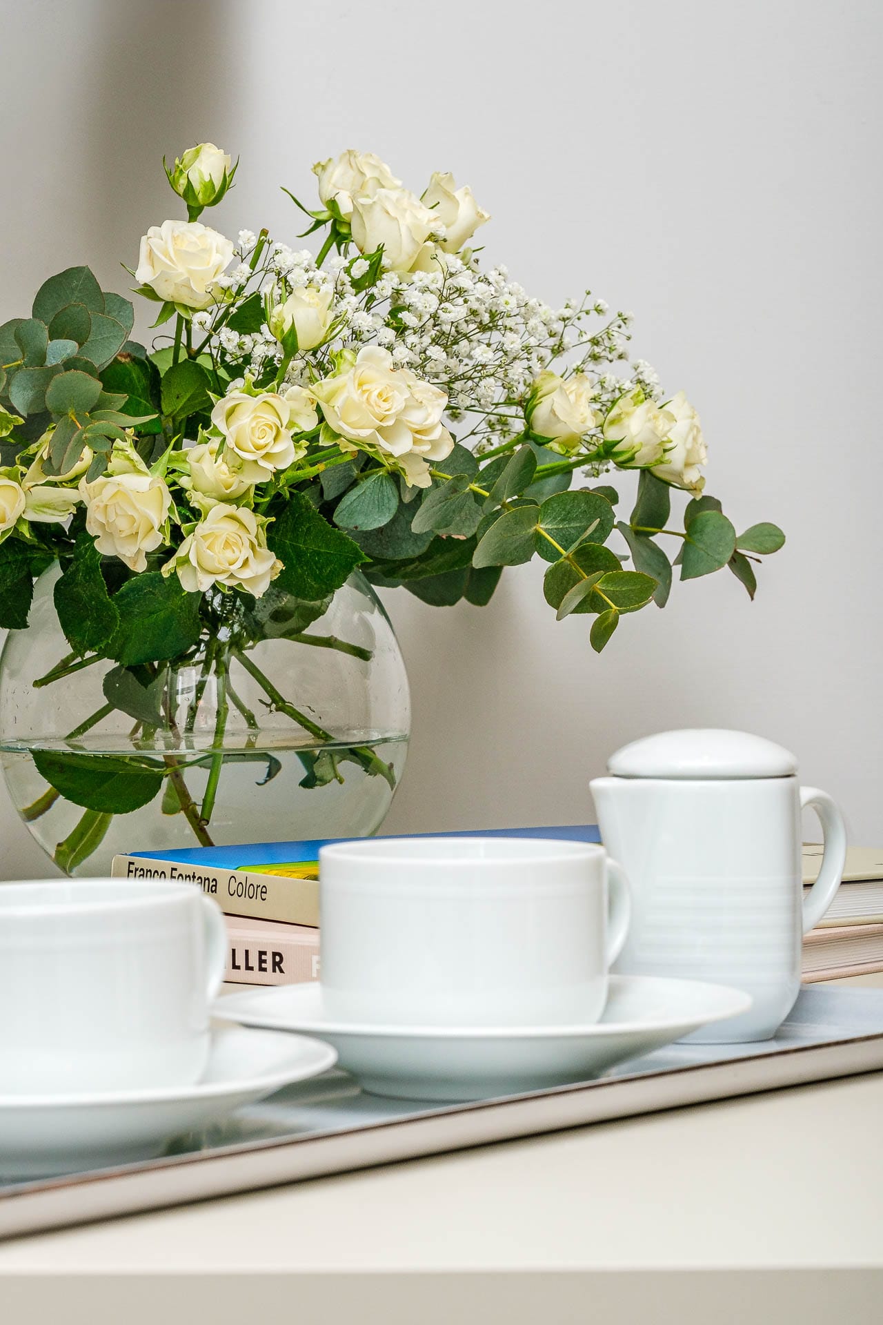L’ambiente, arredato con stile sobrio e dettagli curati, si apre su una tranquilla strada residenziale, garantendo silenzio e privacy.