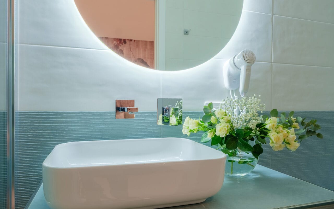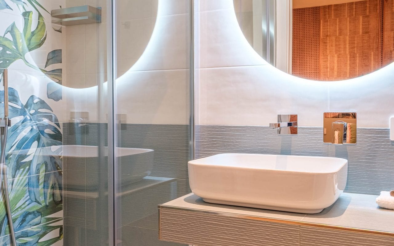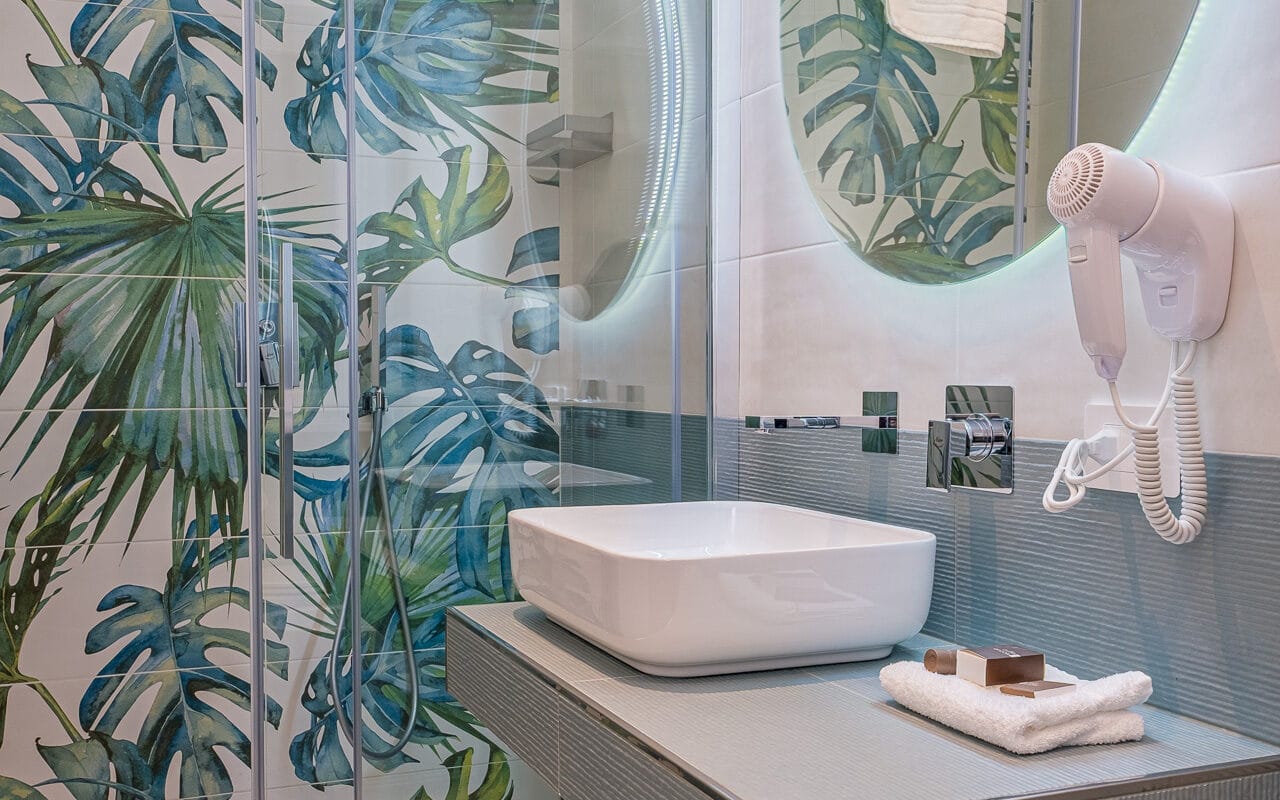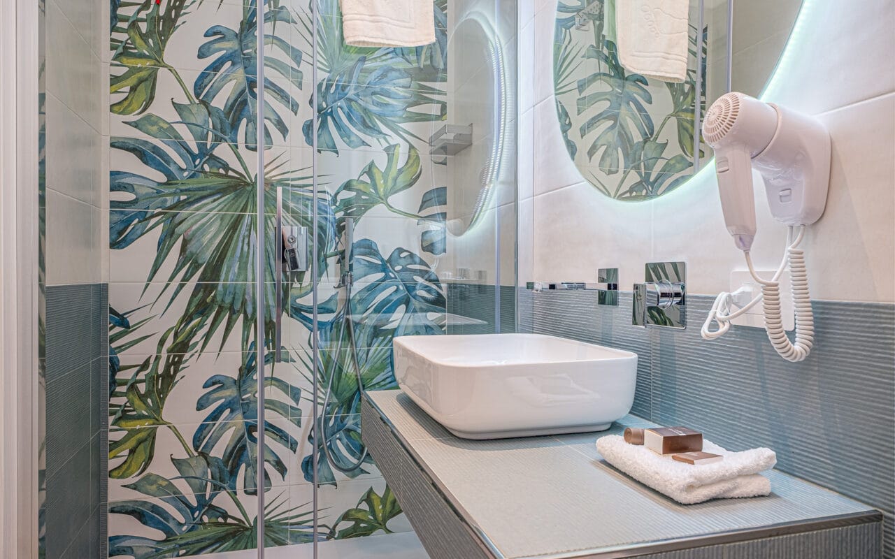 Una camera matrimoniale luminosa e accogliente, perfetta per chi cerca un’atmosfera rilassante. I l copriletto verde salvia, i cuscini dai toni naturali e la grande carta da parati con motivi orientali creano un ambiente armonioso e moderno.Il bagno, dallo stile tropicale con doccia walk-in e piastrelle a foglie verdi, è un piccolo gioiello di freschezza. […]