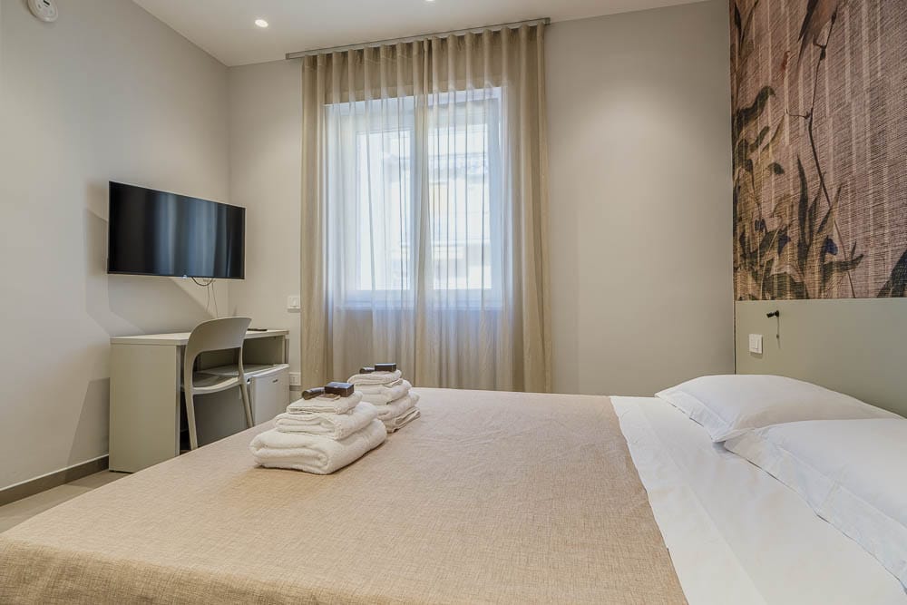 Ampia e piena di luce, questa camera ti accoglie con toni caldi e morbidi, un letto comodo con tessuti coordinati e un balconcino dove gustare un caffè o leggere un libro.